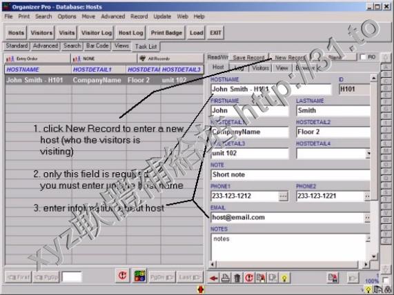 Visitor, Host, Visit Manager for Windows: simple database