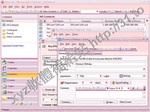 Efficient Software Efficient Ladys Organizer v3.60.352 英文正式版(個人資訊管理系統軟體)
