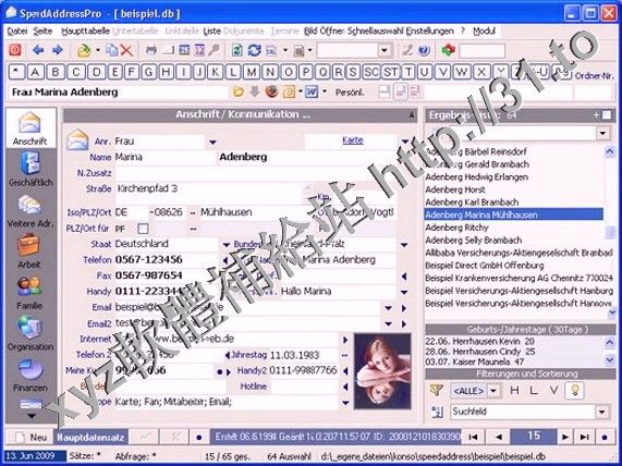 Komfortable Adressen-, Dokument-,Termin- und Auftragsverwaltung (Kalender,SQL-Editor,