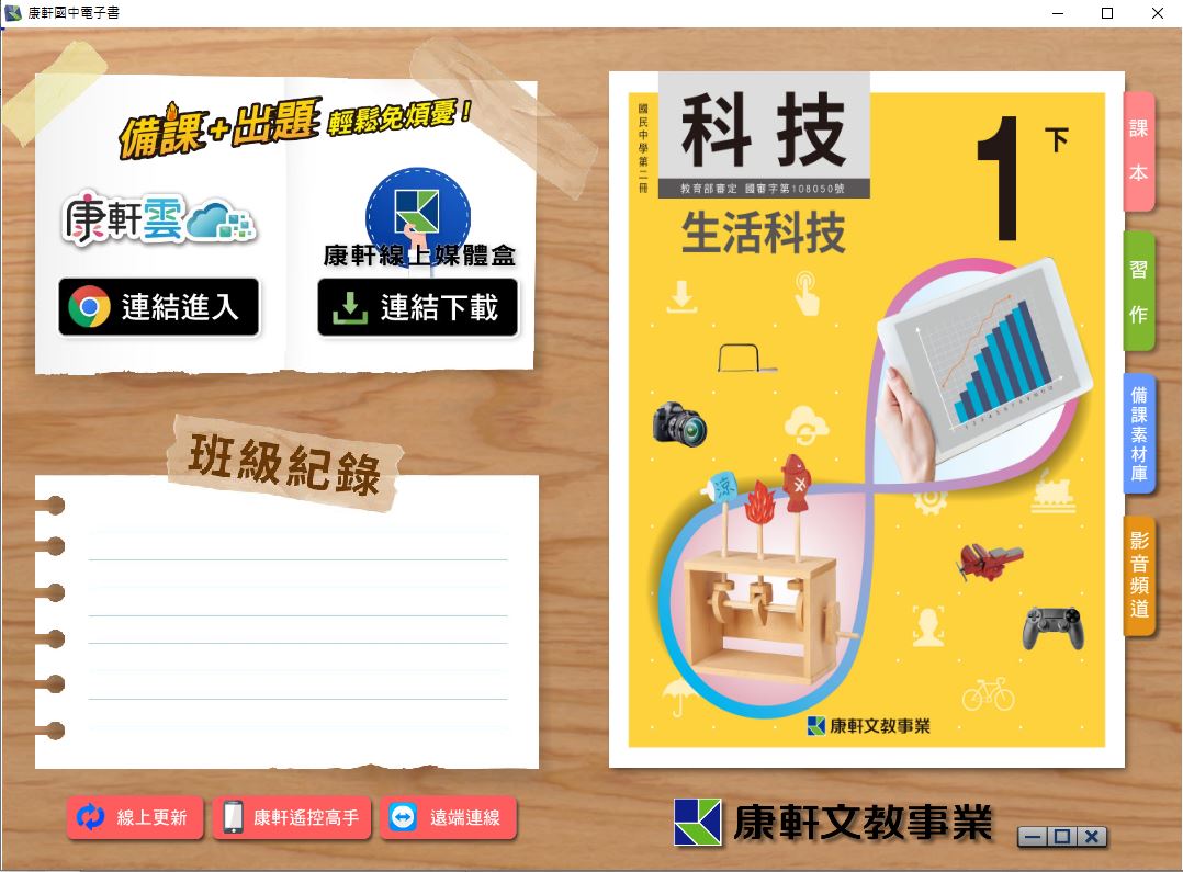 108學年下學期 國中 康軒版 生活科技電子書 1年級(含課本、習作含解答)教學光碟DVD版