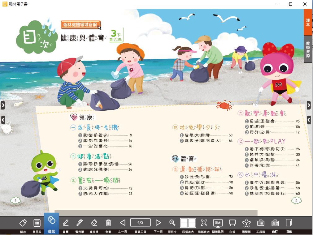 DAE0755--112學年下學期 國小 南一版 健康與體育電子書 5年級(含課本、習作含解答、隨堂練習、作業簿含解答、自學診斷評量)教學光碟