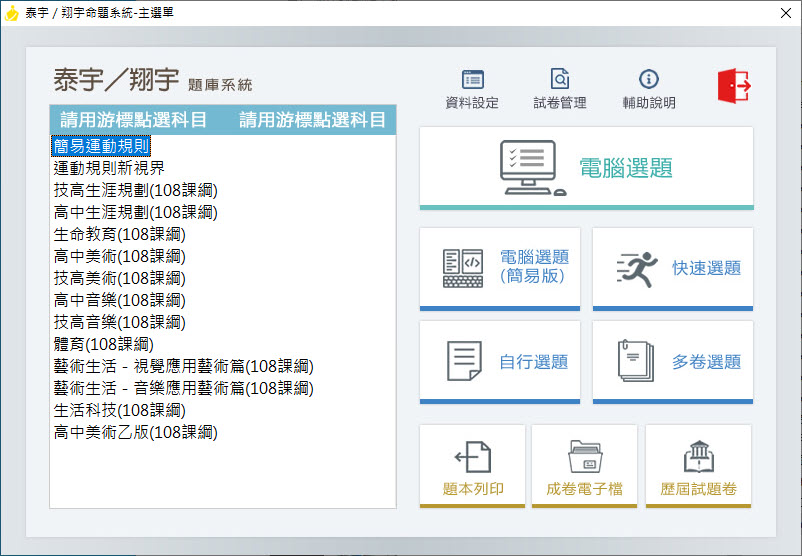112學年上學期 高中/技高 命題光碟 泰宇版 藝能科(108課綱) 題庫光碟