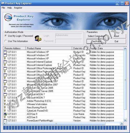 Explorer retrieves serial keys from network computers and